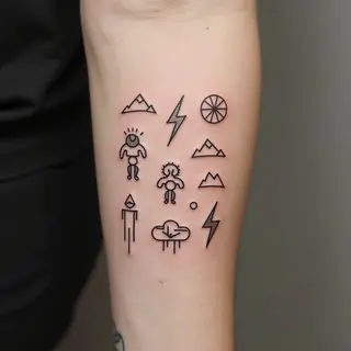 This impressive sleeve showcases the hallmarks of American Traditional tattooing: bold outlines, limited color palettes, and classic imagery. The composition is dynamic, flowing down the upper arm with a sense of movement and narrative.