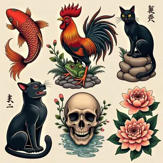 Executed in a classic traditional style, it features bold outlines, limited but saturated color palette, and a sense of playful whimsy characteristic of vintage flash art.