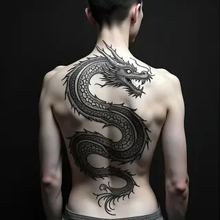 A Miniature Dragon Tattoo in Ink Wash Style