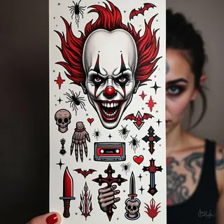 This collection of flash tattoos draws inspiration from the natural world and ancient symbolism. The designs incorporate elements such as leaves, vines, celestial bodies (moons, planets), crystal formations, snake imagery, and stylized eye motifs.