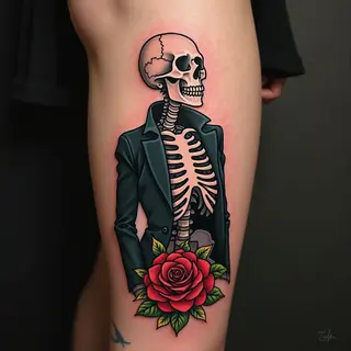 The minimalist style emphasizes the beauty of botanical forms with clean lines and subtle shading, creating an elegant and understated aesthetic. This design draws inspiration from traditional botanical illustrations and celebrates the enduring appeal of floral motifs in body art.