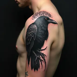 The design seamlessly integrates with the natural contours of the shoulder, creating a visually harmonious piece. The use of fine lines and smooth gradients contributes to an overall impression of realism and tranquility.