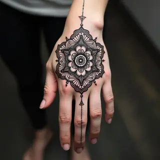 A Striking Dotwork Tattoo with a Central Mandala-Like Motif