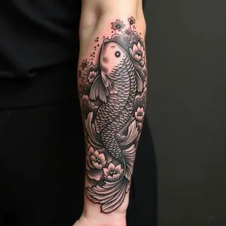 Striking Half-Sleeve Koi Fish Tattoo in Japanese Style