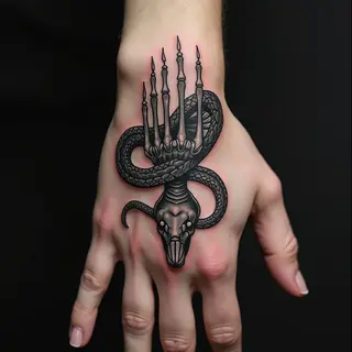 This intricate hand tattoo combines celestial elements like stars, crescent moons, and suns with a detailed butterfly design. The linework style creates a delicate and ethereal feel, making it a beautiful addition to the hand. The placement allows for constant visibility and serves as a personal reminder of growth and connection to the cosmos.