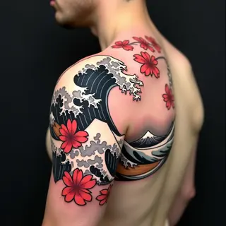 The use of bold outlines, vibrant colors, and shading techniques are characteristic of this ancient art form. This piece exemplifies the dedication and skill required for a full-sleeve irezumi.