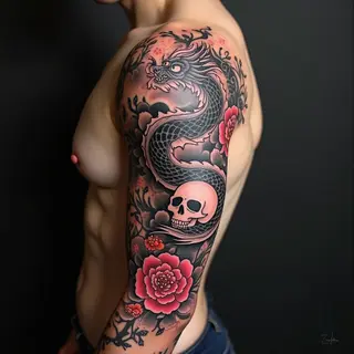 These designs are characteristic of Irezumi, the traditional Japanese tattooing style known for its bold lines, symbolic meaning, and intricate details. Each design is intended to be transferred directly onto skin as a permanent work of art.