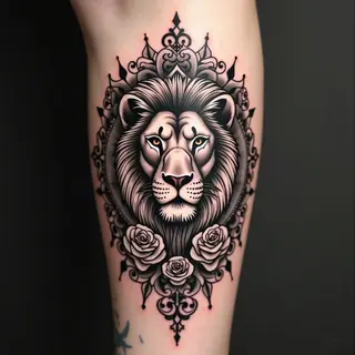 The design utilizes shading techniques to create depth and dimension, resulting in a visually striking piece of body art. Lion tattoos often symbolize courage, strength, royalty, and protection – qualities that resonate deeply with many individuals.