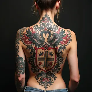 This style lends itself well to the curvature of the neck, enhancing its aesthetic appeal. The placement and scale suggest a commitment to detailed artistry.