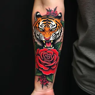 This design features a striking raven, rendered with meticulous detail and vibrant color. Surrounding the bird are stylized sunflowers, adding warmth and visual interest to the composition. Bold outlines define the shapes while smooth shading creates depth and dimension. This tattoo exemplifies the modern resurgence of classic tattoo aesthetics.