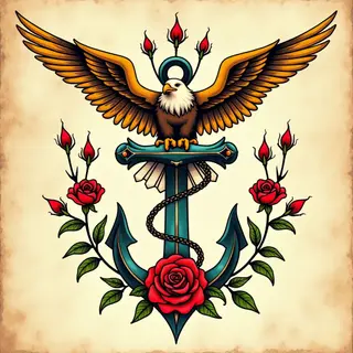 Traditional American tattoos are instantly recognizable thanks to their distinct features: bold black outlines, a limited color palette (typically red, yellow, green, and black—think classic lowrider colors), and iconic imagery. Roses symbolized love and remembrance; anchors represented stability and hope; eagles stood for strength and freedom; pin-up girls were tokens of longing and good fortune.