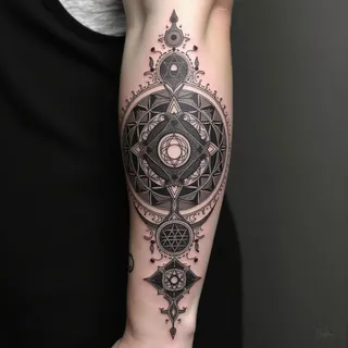- Dotwork: Creates depth and texture, representing the intricate connections within spiritual concepts.