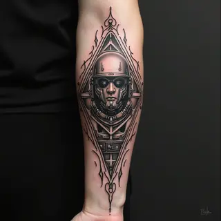 This tattoo showcases an intriguing blend of organic and geometric forms. The stylized serpent's body seamlessly integrates with a repeating hexagonal pattern, creating a visually compelling composition. The use of negative space emphasizes the clean lines and minimalist aesthetic. This style is ideal for those seeking a subtle yet impactful design that speaks to both strength and order.