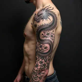 The imagery often represents overcoming challenges, finding peace in nature, or the cyclical nature of life. Traditional tattoos like this are known for their durability and enduring appeal.
