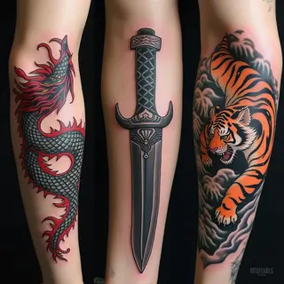 The classic shading techniques create depth and visual appeal, making it a timeless piece of body art.