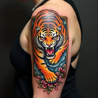 This collection showcases a variety of American Traditional tattoo designs. The style is characterized by bold outlines, limited color palettes, and iconic imagery rooted in maritime culture and early 20th-century symbolism. These tattoos often carry personal meanings related to strength, loyalty, and perseverance.