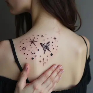 It draws inspiration from ancient cultural motifs, lending it a sense of depth and history. The meticulous linework and precise placement contribute to its overall impact.
