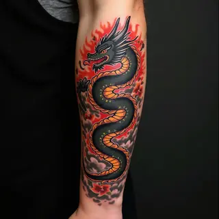 Executed in a classic traditional style, it features bold outlines, limited but saturated color palette, and a sense of playful whimsy characteristic of vintage flash art.