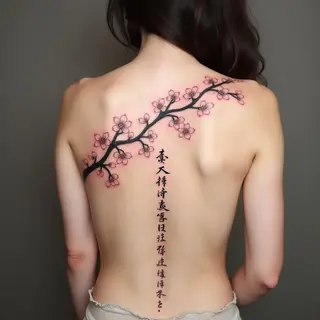 A Distressed Cross Tattoo with Personal Script on the Upper Back