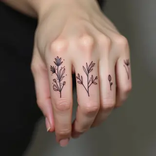 The placement on the fingers allows for a unique and personal expression, while the fine lines create an elegant aesthetic. Careful consideration is given to detail and spacing to ensure readability and longevity of the design.