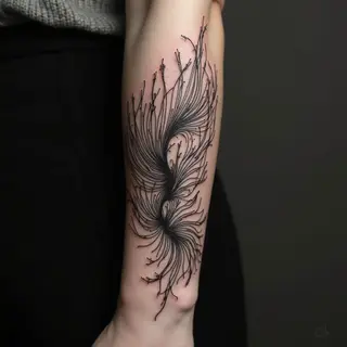 This tattoo exemplifies the growing popularity of fine-line art, translating complex ideas into minimalist forms. The design’s intricate details are achieved through precise linework and careful placement, creating a visually captivating piece that blends geometric precision with organic elements.