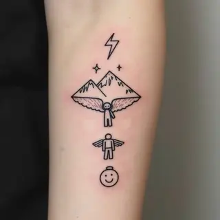 The butterfly tattoo showcases a vibrant insect in flight, with its wings spread wide and colors vivid. The delicate linework highlights the grace and beauty of this creature, making it an eye-catching addition to any arm.
