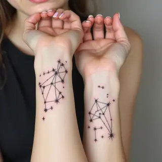 This intricate tattoo showcases the beauty of fine line artistry combined with natural and cosmic imagery. The delicate lines create a sense of lightness and grace, while the plant symbolizes growth and resilience, intertwined with celestial elements representing dreams and aspirations. The use of dotwork adds texture and visual interest to the overall design. This style is popular for its subtlety and ability to be placed on smaller areas of the body.