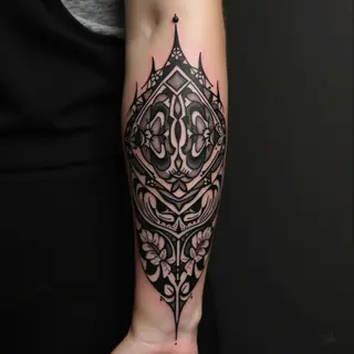 This captivating tattoo showcases the beauty of fine-line artistry. The design seamlessly blends a realistic portrait with delicate butterflies and precise geometric shapes. The use of thin lines creates an ethereal quality, while the strategic placement across the forearm adds visual interest and flow. This style is ideal for those seeking a sophisticated and personalized body art experience.