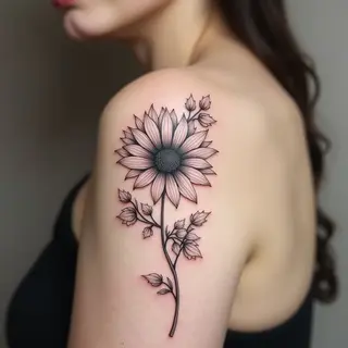 A harmonious blend of styles in a fine line tattoo