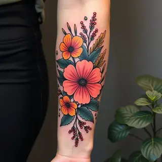 This tattoo features a stylized rose rendered in a single continuous line. The simplicity of the design emphasizes the flower's form while maintaining an understated elegance. It’s a popular choice for individuals who appreciate minimalist aesthetics and seek a meaningful yet discreet body art piece.