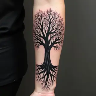 A captivating forearm tattoo blending traditional tribal art and geometric precision
