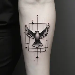 This captivating tattoo showcases a complex geometric design on the forearm. The piece utilizes precise linework to create an intricate pattern that evokes a sense of order and balance. The abstract nature allows for personal interpretation, making it a unique expression of individuality.