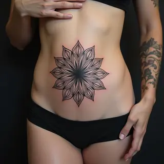 Executed primarily in blackwork style with meticulous linework, the piece evokes a sense of order and ancient symbolism.