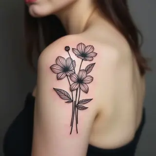 This tattoo showcases the power of geometric patterns combined with fluid, illustrative elements. The central motif appears to be a representation of sacred geometry, often symbolizing harmony and interconnectedness. The surrounding lines create a dynamic visual effect, blending precision with organic movement. This style is gaining popularity among those seeking meaningful and visually captivating body art.