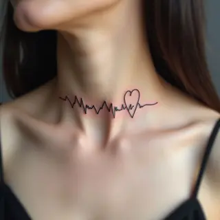 This tattoo showcases a minimalist heartbeat design, cleverly incorporating a heart shape within the waveform. The delicate linework creates a subtle yet impactful visual statement.