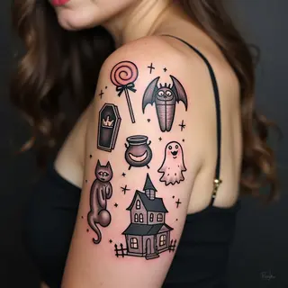 Striking Horror Design: Three Heart Shapes with Classic Halloween Imagery
