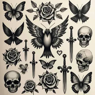 These designs are ideal for those seeking to express a darker aesthetic or embrace symbolic representations of mortality and the macabre. The style blends elements of traditional linework with a contemporary horror sensibility.