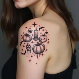 This curated collection showcases miniature tattoo designs centered around spooky themes. The designs range from playful ghosts and bats to classic Halloween imagery like pumpkins and candy corn. The style emphasizes clean lines and a delicate aesthetic, making them suitable for those who appreciate subtle yet impactful body art.