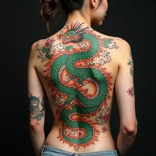 The composition demonstrates mastery of traditional techniques, emphasizing bold outlines, smooth shading, and dynamic placement across the entire back and extending onto the arms. This piece speaks to a deep appreciation for Japanese art and symbolism.