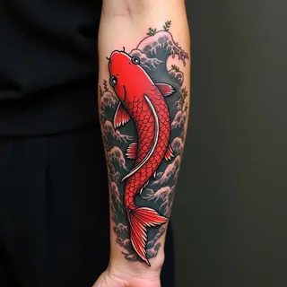 The design incorporates classic elements like swirling clouds and intricate scales, demonstrating mastery of linework and shading techniques characteristic of this style.