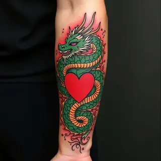 Traditional techniques are evident in the bold outlines, smooth shading, and vibrant color palette characteristic of this art form. The dragon symbolizes strength, wisdom, and good fortune, while the koi represents perseverance and transformation.
