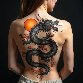 This stunning tattoo showcases a classic example of Japanese Irezumi style. The central motif is a powerful tiger, rendered with bold outlines and dynamic shading. Traditional Japanese tattooing emphasizes symbolism and storytelling; the tiger often represents courage, strength, and protection. The surrounding elements incorporate wave patterns and floral details, common in this artistic tradition. The placement across the shoulder and upper chest allows for a visually impactful display of the design’s grandeur.