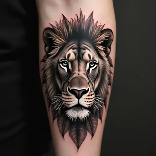 A captivating lion tattoo showcases the power and regal presence of the king of beasts