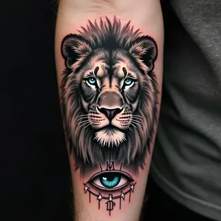 This captivating tattoo combines the symbolic power of a lion with the structured beauty of a mandala. The lion's form is meticulously woven into a framework of geometric shapes, creating a harmonious balance between naturalism and abstract art.