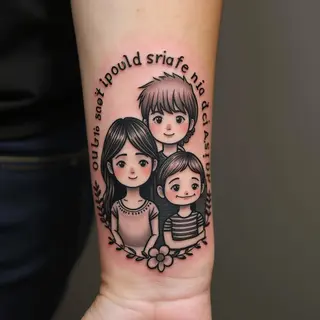 This striking tattoo combines realism with symbolic imagery to represent the enduring bond between a father and his children. The intricate shading and detailed linework create a powerful visual narrative of protection, love, and shared experiences.