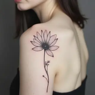 A single sprig of lavender, a delicate fern frond, or a stylized leaf can represent growth, resilience, or connection to nature. The clean lines and negative space create a visually calming aesthetic.