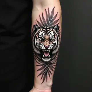 This captivating forearm sleeve showcases a complex blend of geometric patterns and tribal influences. The design flows seamlessly around the arm, creating a visually dynamic and impactful piece.