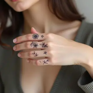 These delicate constellation tattoos showcase a modern approach to body art. The leaf motif blends seamlessly with the celestial imagery, creating a unique and personal design.