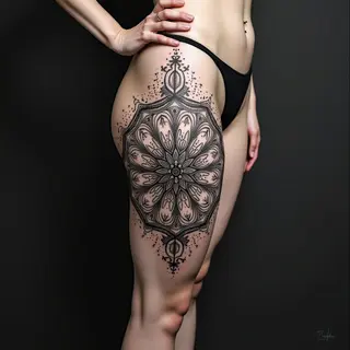 The integration of nature and geometry creates a sense of balance and harmony, hinting at underlying universal principles. This design exemplifies how seemingly disparate artistic styles can be harmoniously combined to create a powerful visual statement.