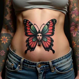 This design exemplifies the classic aesthetic of American Traditional tattooing. Bold outlines, limited color palettes, and iconic imagery combine to create a visually powerful piece.